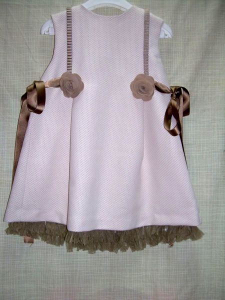 Vesitdo niña s/m rosa adorno flores y lazos laterales beige